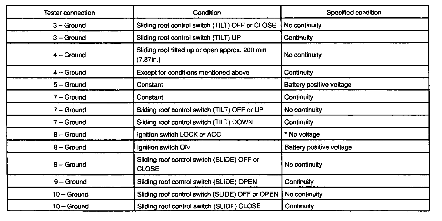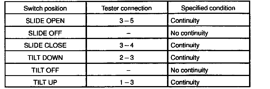 1. INSPECT SLIDING ROOF SWITCH CONTINUITY