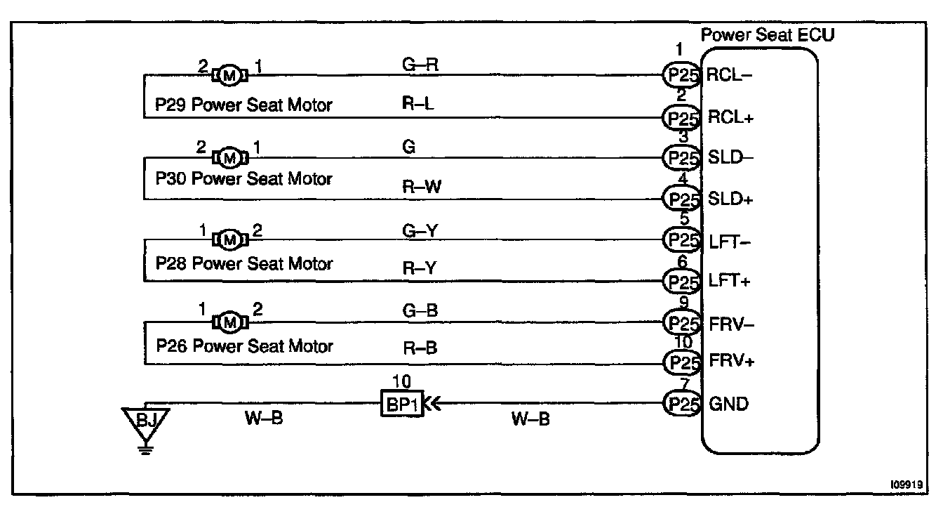 CIRCUIT DESCRIPTIONThe Seat Position Control ECU controls the 4 motors for slide, front vertical, rear vertical and reclining.