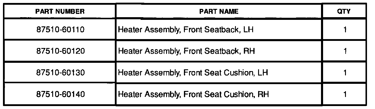 This is to inform you of the seat heater replacement procedure. A change has been made to allow separate installation of the seat heater element.