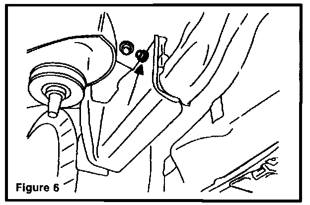 4. Remove the front bracket using a 13 mm socket (2 places). (Figure 5) On the passenger side, the air conditioning line shroud must be removed first, using a 10 mm socket. (Figure 6)