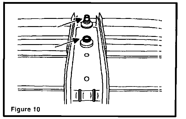 6. Remove the two middle brackets, bolts, and nuts from the vehicle using a 13 mm socket. Allow the brackets to support the board by the top vehicle weld nut studs. (Figures 9 and 10)