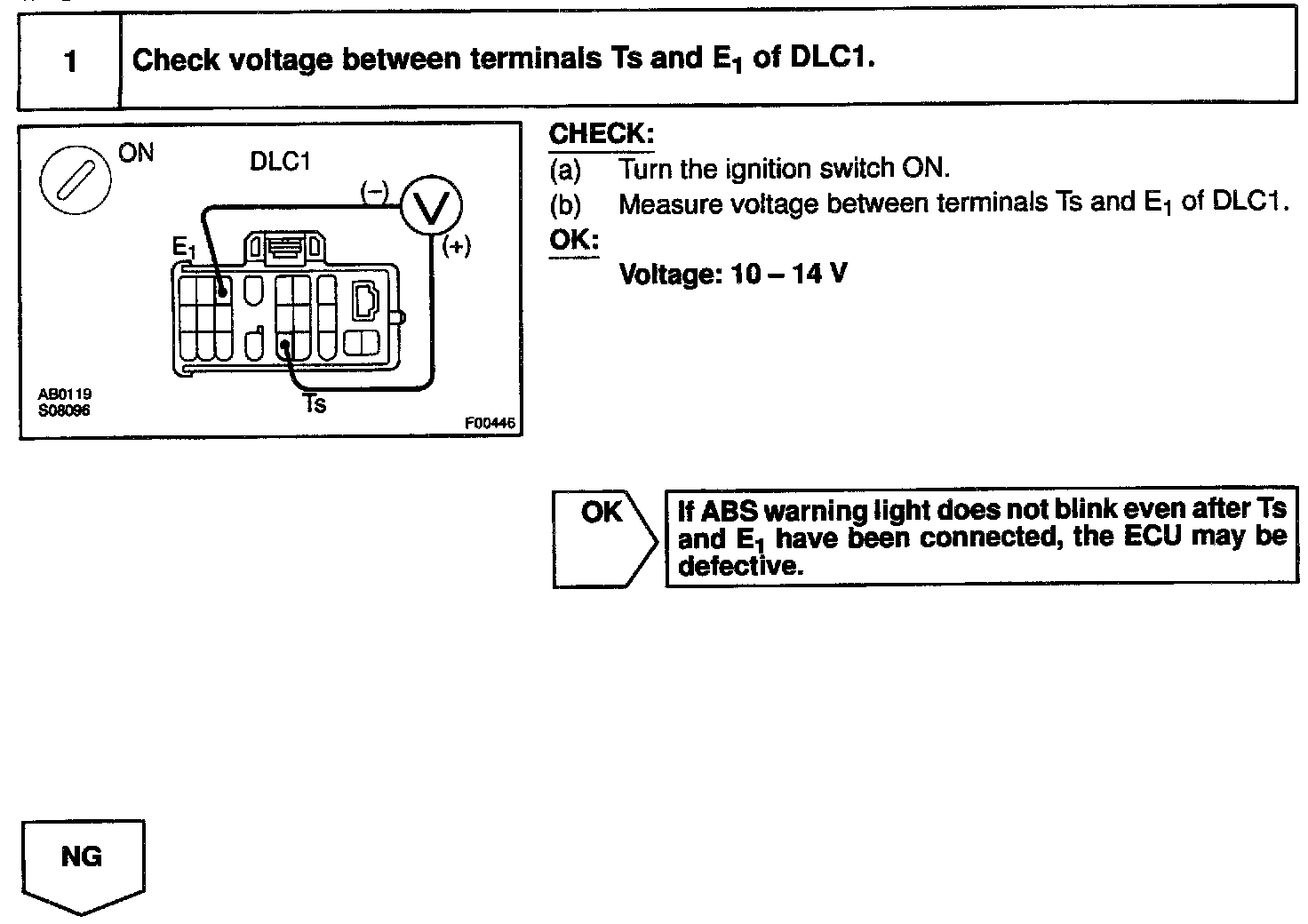 Connecting terminals Ts and E1 of the DLC1 or Tc starts the check.