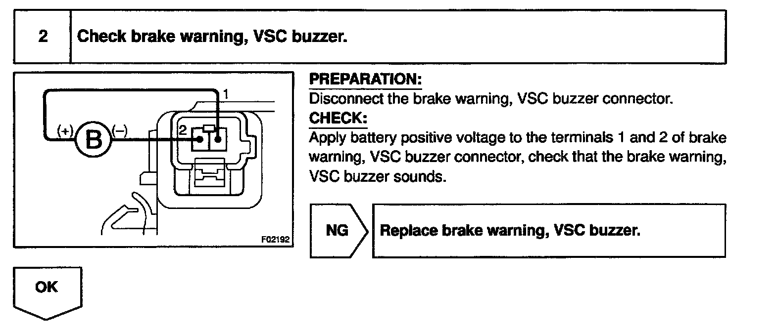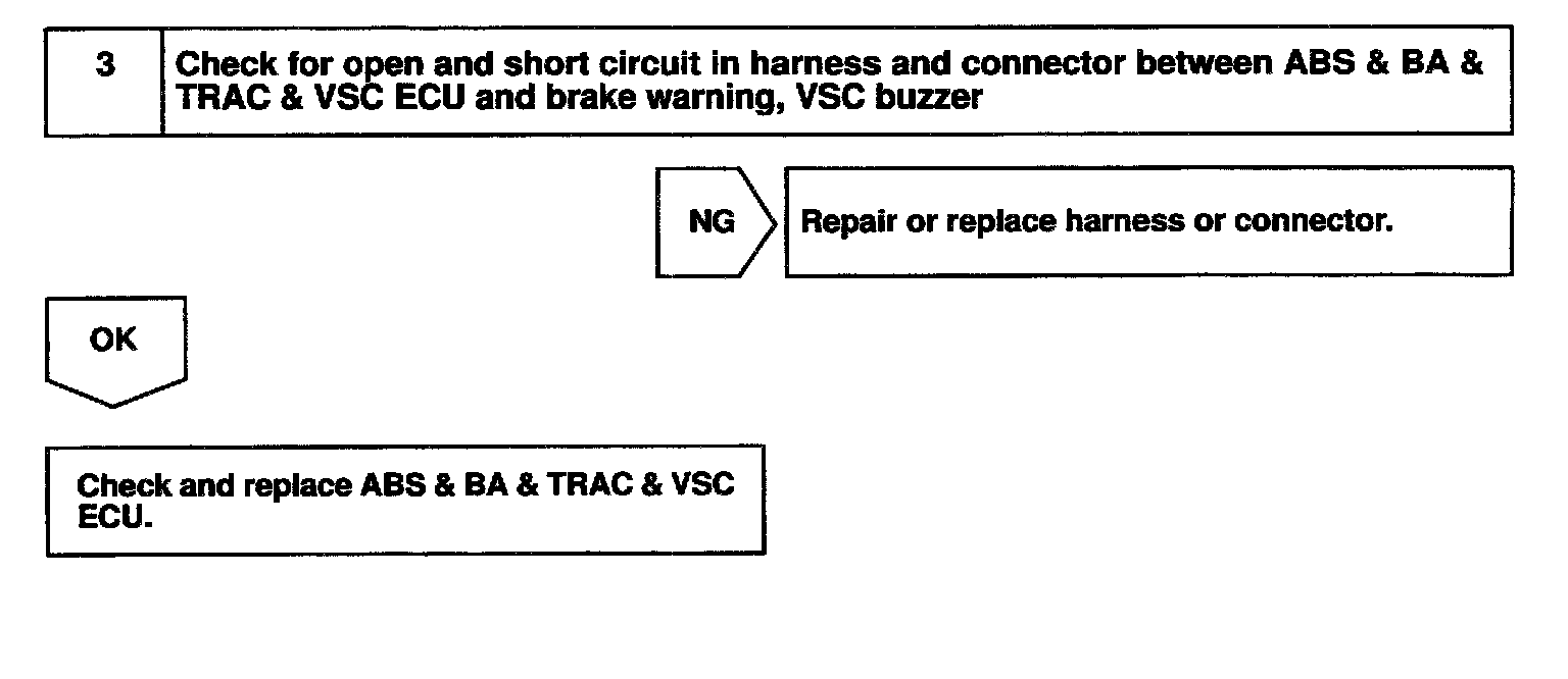 CIRCUIT DESCRIPTIONThe brake warning, VSC buzzer sounds while the accumulator pressure is abnormally low or an abnormality casing low fluid pressure occurs VSC is activated.