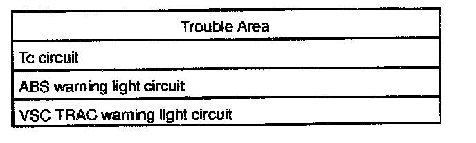 - If no code appears, inspect the Tc circuit, ABS or VSC TRAC warning light circuit.