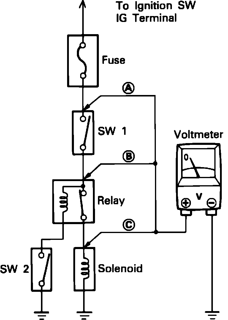 C - Ignition SW, SW 1 and Relay on (SW 2 OFF)