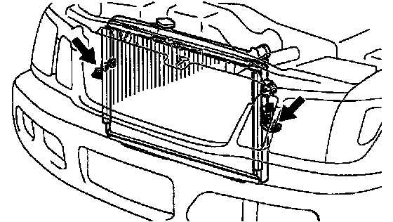 b. Remove the 2 bolts, and disconnect the 2 brackets on the wire from the radiator.