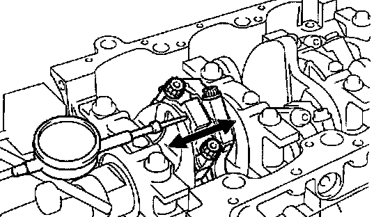 Using a dial indicator, measure the thrust clearance while moving the connecting rod back and forth.