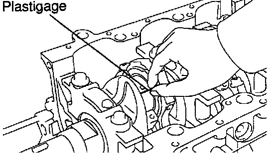 g. Lay a strip of Plastigage across each journal.