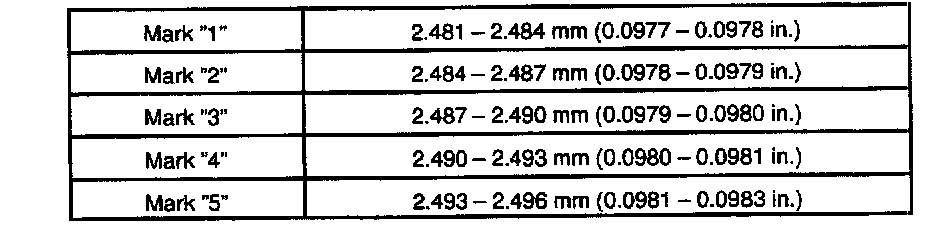 Standard clearance: 0.040 - 0.058 mm (0.0016 - 0.0023 inch)
