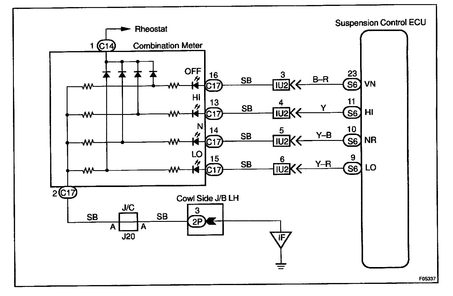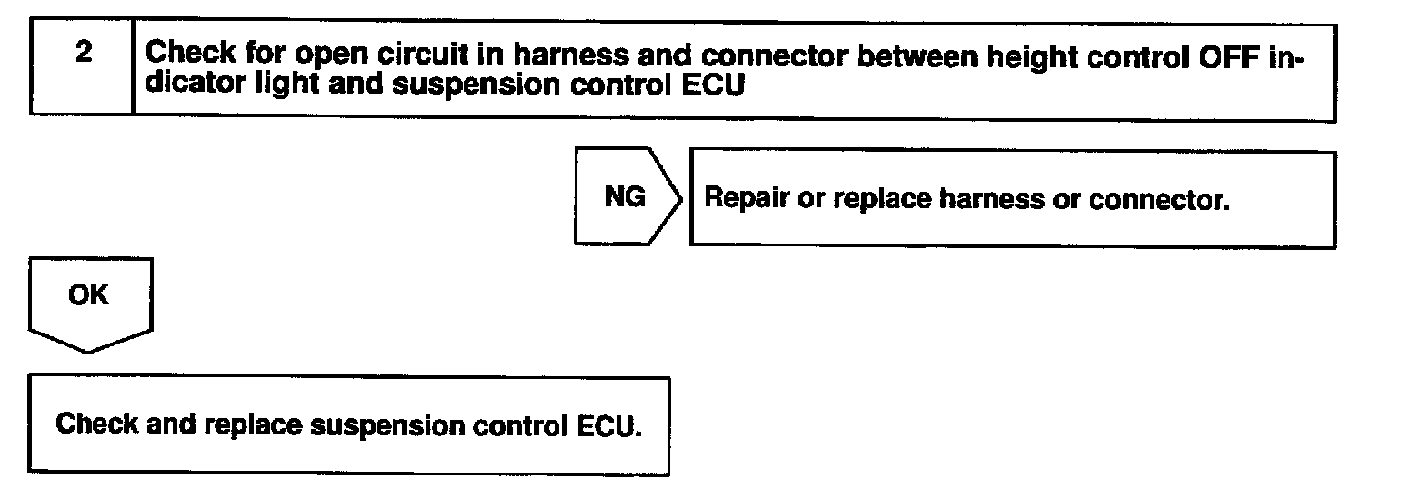 CIRCUIT DESCRIPTIONIf the ECU detects trouble, the height control OFF indicator light flushes while prohibiting height control at the same time. At this time, the ECU records a DTC in memory.