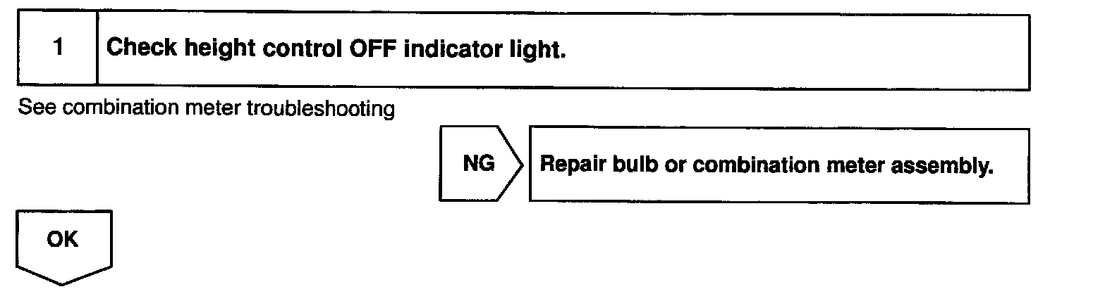 Connect the terminals Tc and E1 of the DLC1 to make the height control OFF indicator light flushed and DTC output.