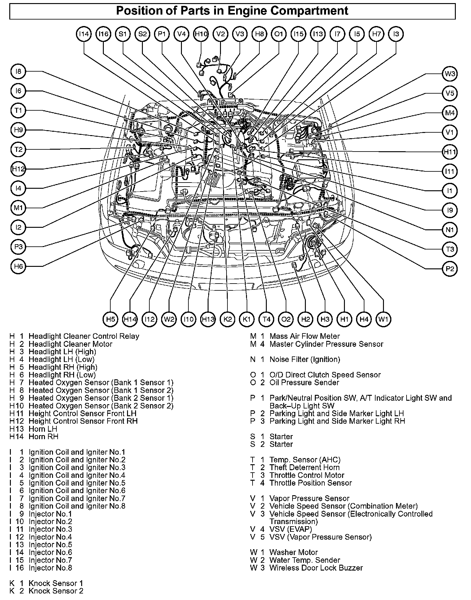 Position of Parts in Engine Compartment: Heated Oxygen Sensors: