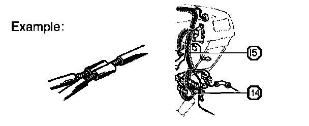E: Indicates the wiring harness and wiring harness connector.The wiring harness with male terminal is shown with arrows.