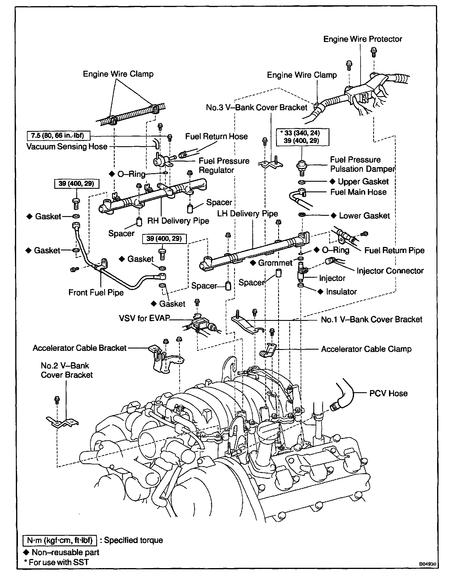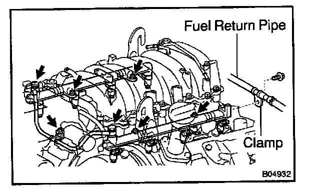 - Be careful not to drop the injectors when removing the delivery pipes.