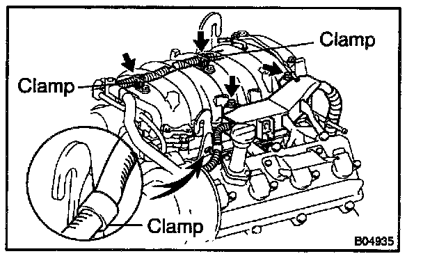 Install the 2 wire clamps on the engine wire to the brackets on the delivery pipe.