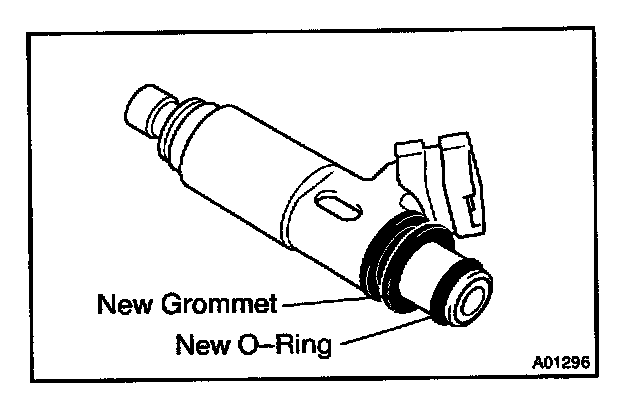 b. Apply a light coat of gasoline to a new O-rings and install it to each injector.