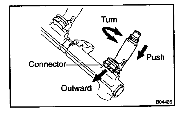 c. While turning the injector clockwise and counterclockwise, push it to the delivery pipes. Install the 8 injectors.