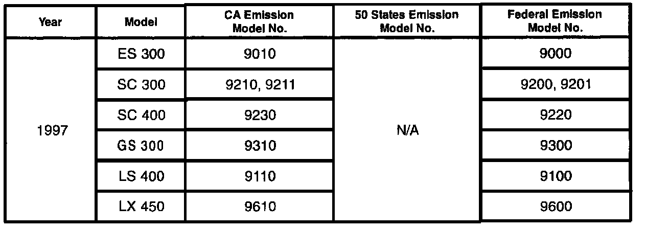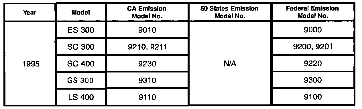 We have included a table showing 1995 - 2000 U.S. model numbers and their exhaust emissions certifications. Please continue to consult the Electronic Parts Catalog (EPC) or the parts microfiche for emission label parts numbers.