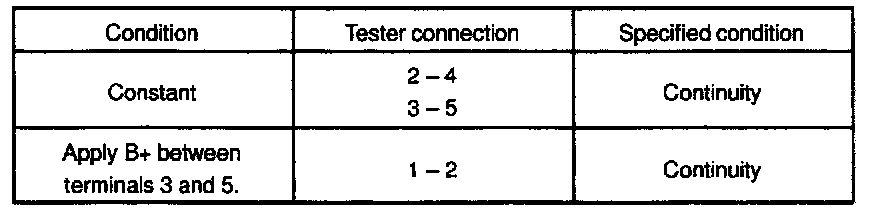 If continuity is not as specified, replace the relay.