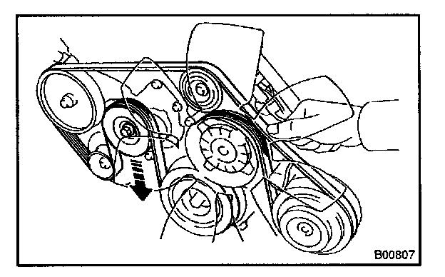 - Check the alignment of the belt tensioner pulley to make sure the drive belt has not slipped off the pulley.