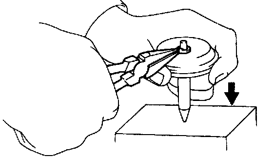 b. Firmly hold down the piston, then compress the compression spring.