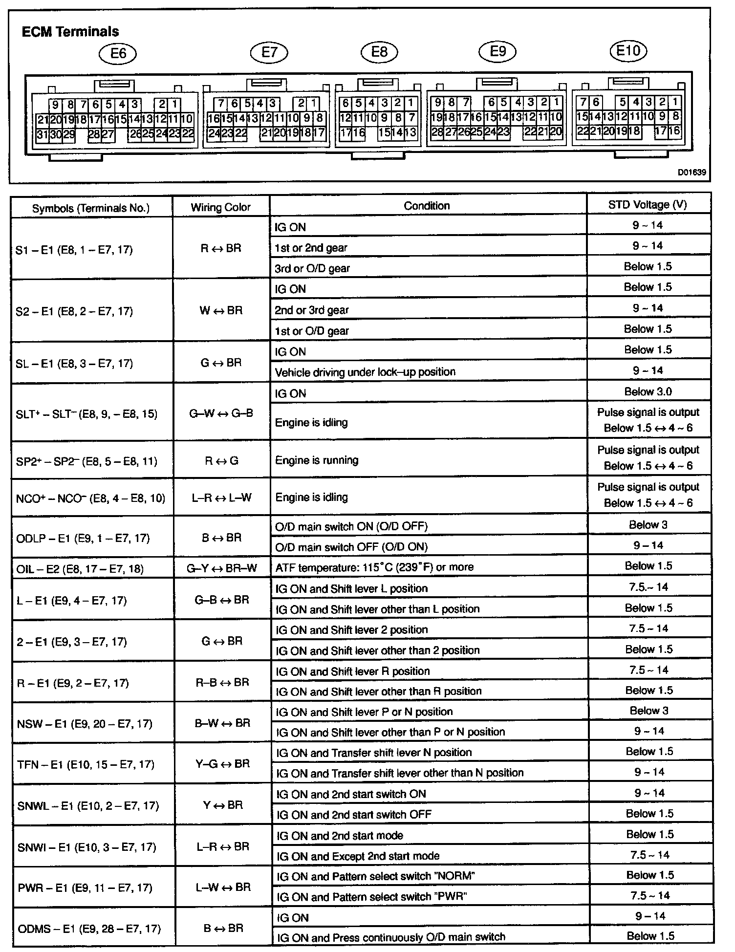 Pinout Values and Diagnostic Parameters