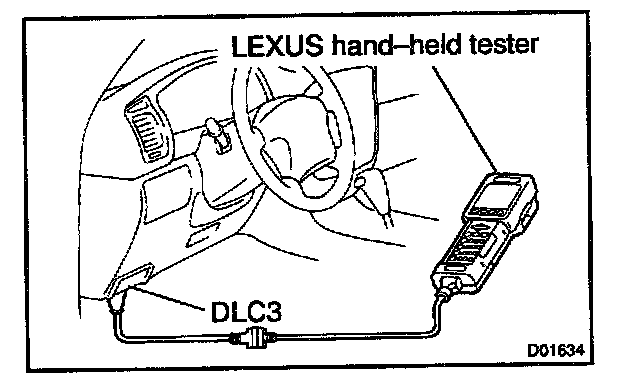 2. Connect the LEXUS hand-held tester to DLC3 at the lower of the instrument panel.