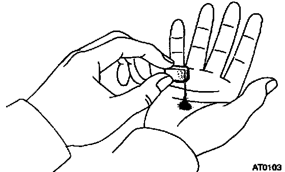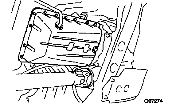 HINT: Remove any packing material and be careful not to drop oil on the contacting surfaces of the transmission case and oil pan.