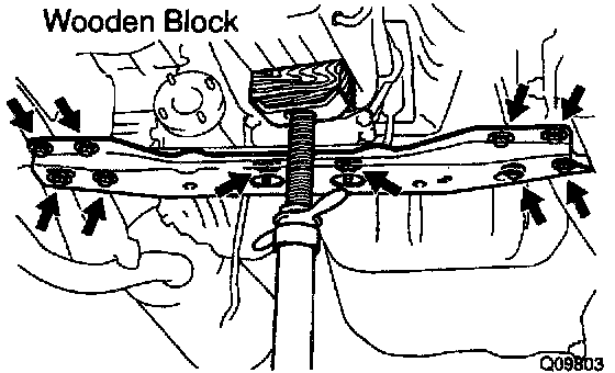 NOTICE: Use a wooden block so not to damage the transmission oil pan.
