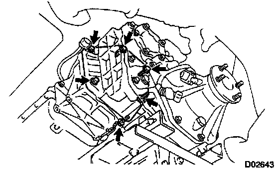 b. Remove the 8 bolts, 2 nuts and crossmember.