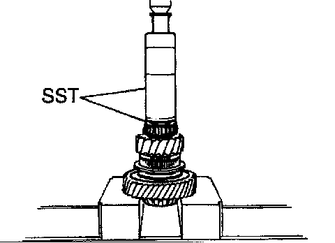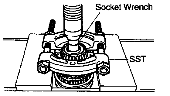 Using SST, a press and socket wrench, remove the rear taper roller bearing.