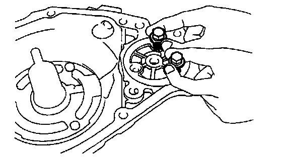 Remove the 3 bolts and oil pump plate.