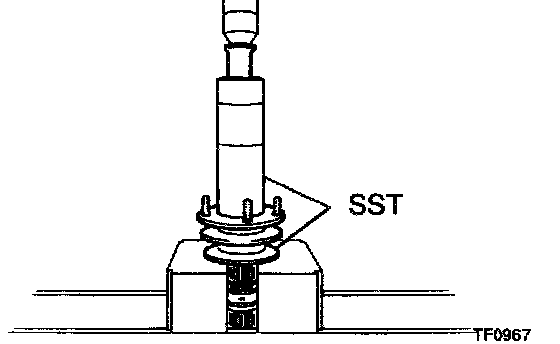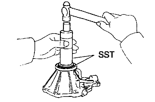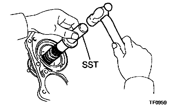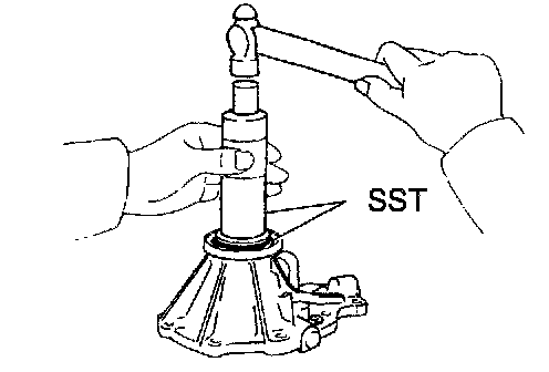b. Using SST and a hammer, drive in the oil seal.