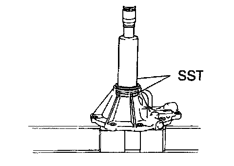 b. Using SST and a press, remove the ball bearing from the rear extension housing.