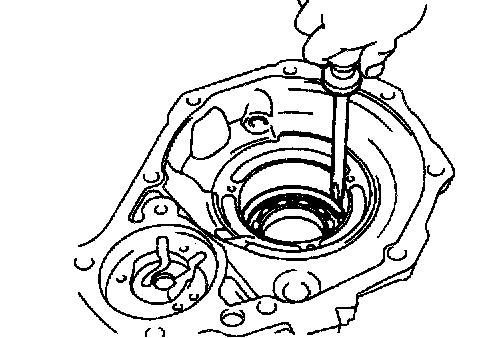 Using a screwdriver, pry out the oil seal from the rear extension housing.