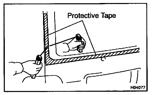 b. Hold back door glass in place securely with protective tape or equivalent until the adhesive hardens.