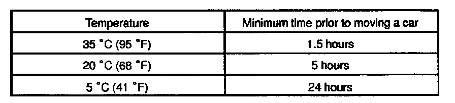 NOTE: Take care not to drive the vehicle during the time described in the table.