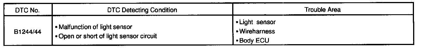 This DTC is output when failure of light sensor circuit is detected.