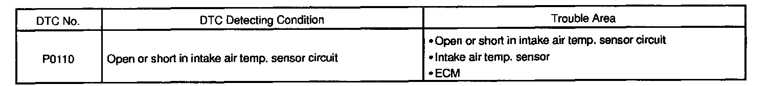 If the ECM detects the DTC P0110, it operates the fail-safe function in which the intake air temperature is assumed to be 20 °C (68 °F).