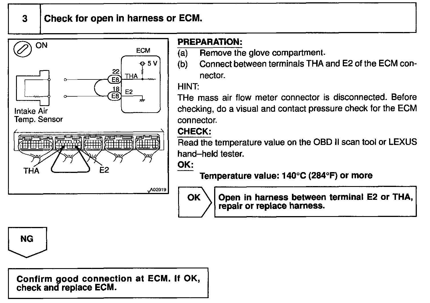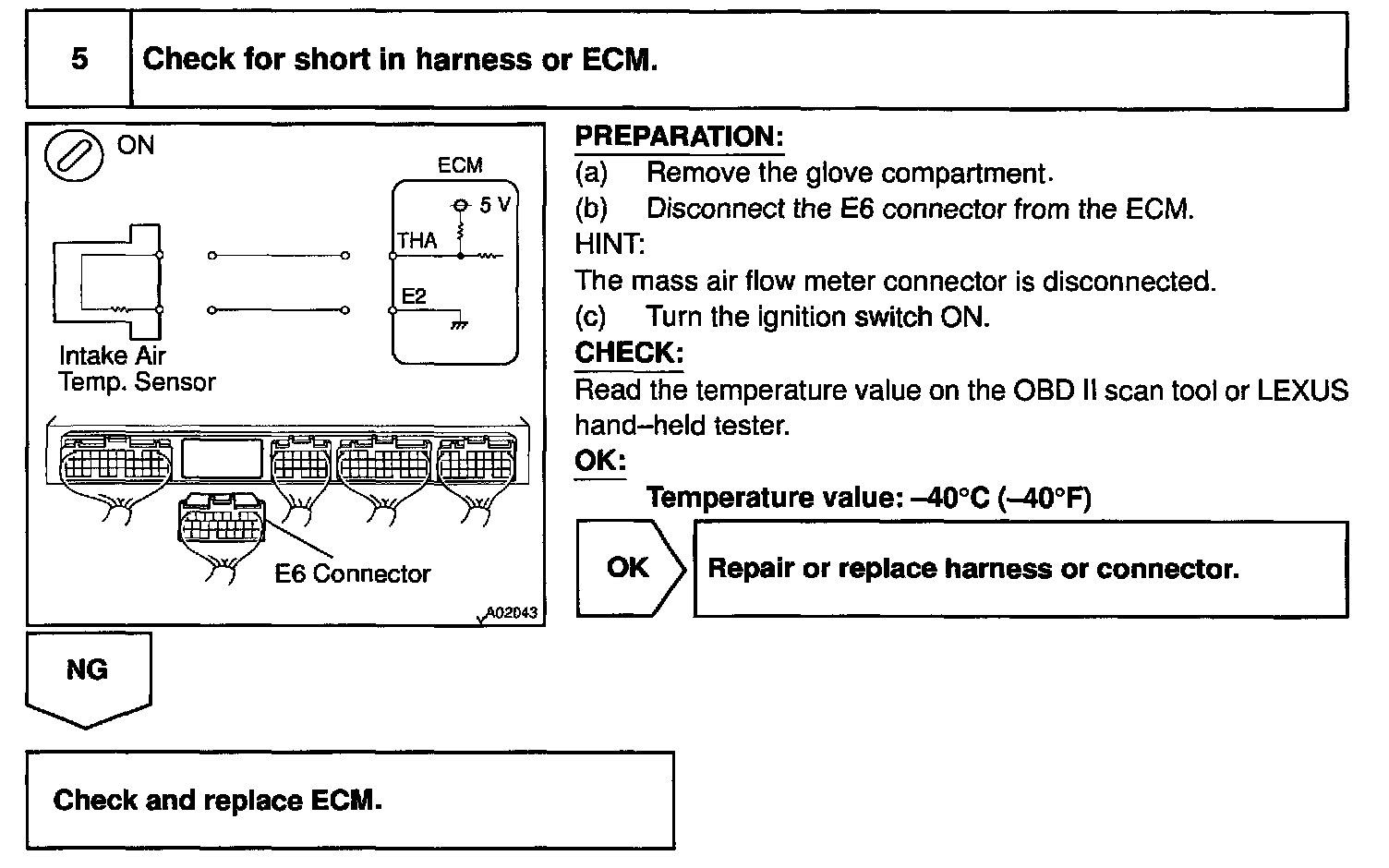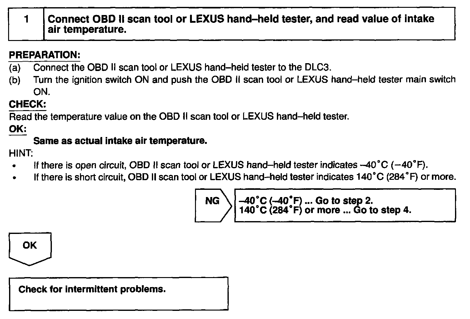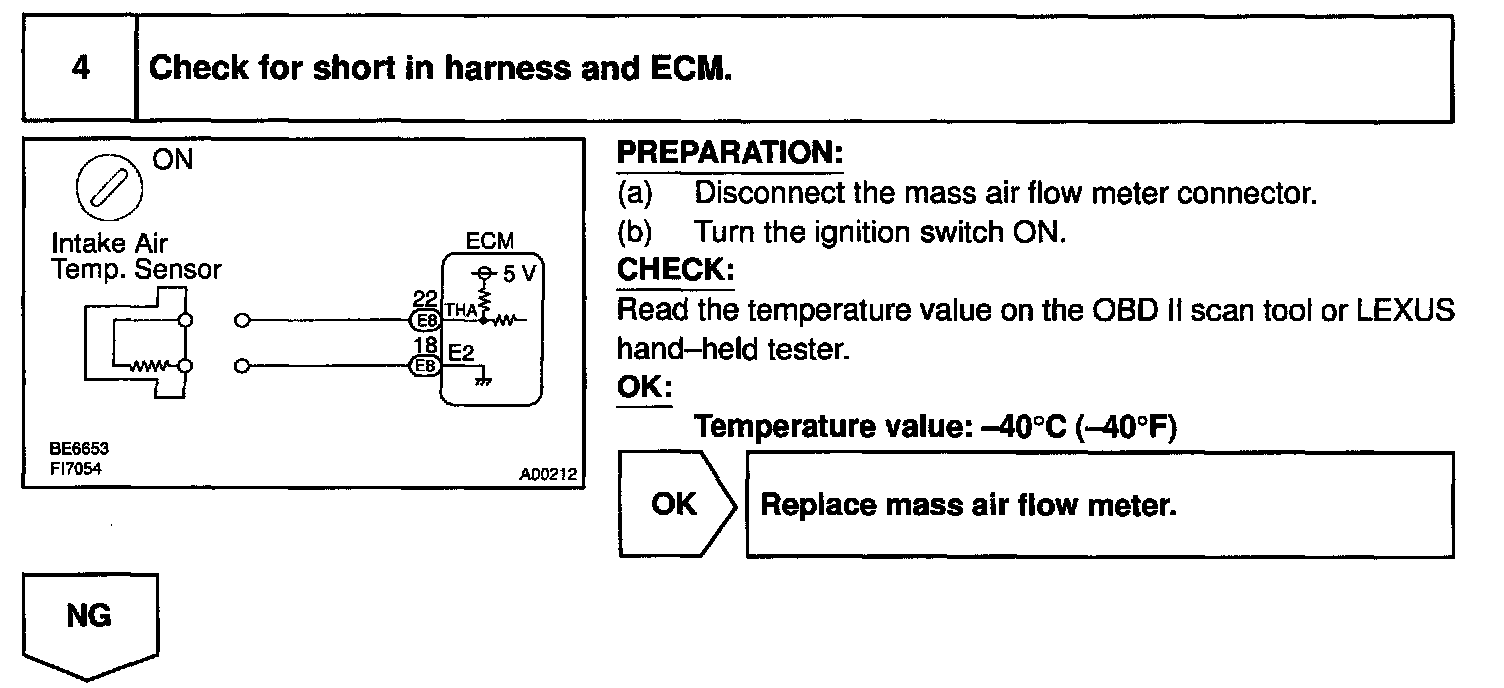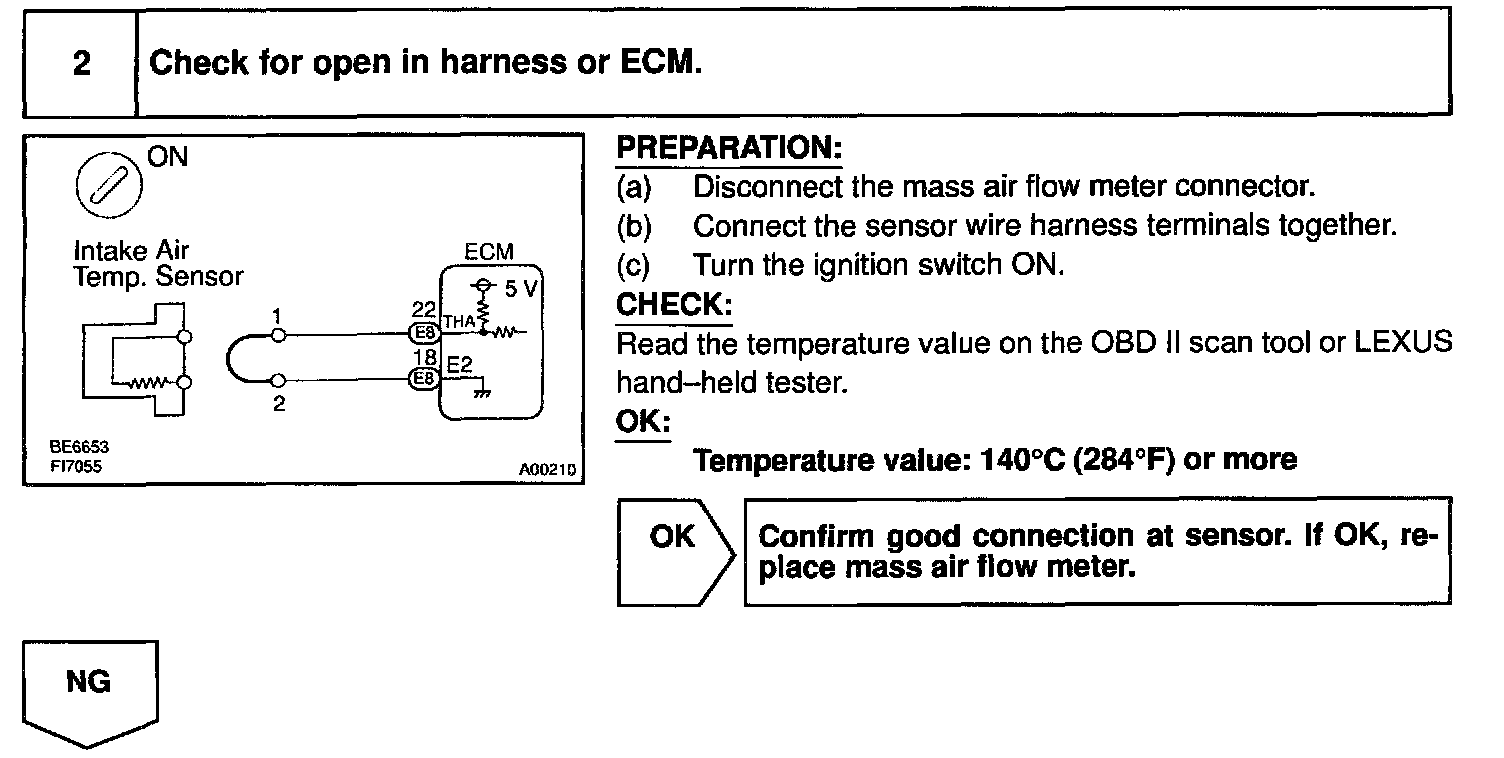 HINT: After confirming DTC P0110, use the OBD II scan tool or LEXUS hand-held tester to confirm the intake air temperature form the CURRENT DATA.