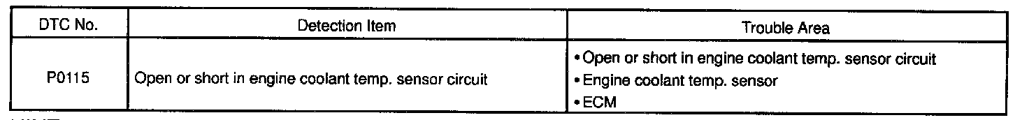 If the ECM detects the DTC P0115, it operates the fail-safe function in which the engine coolant temperature is assumed to be 80 °C (176 °F).