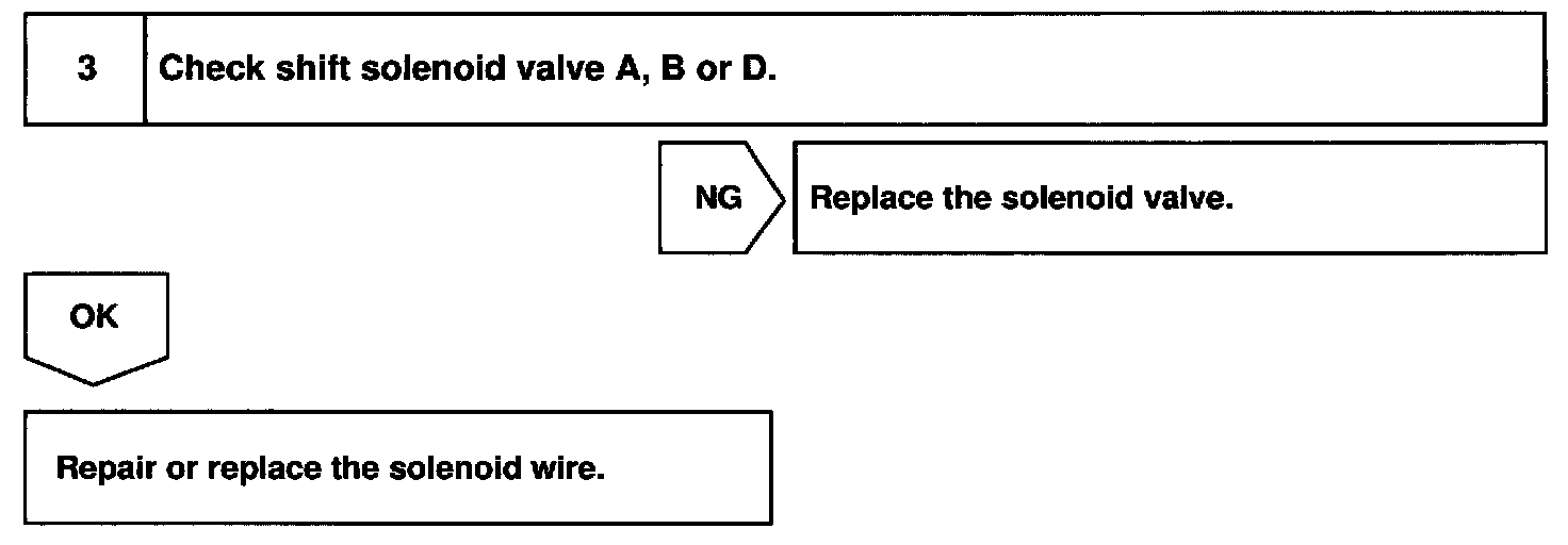 Check the shift solenoid valve A when DTC P0753 is output, check the shift solenoid valve No.2 when DTC P0758 is output and check the shift solenoid valve D when DTC P0768 is output.