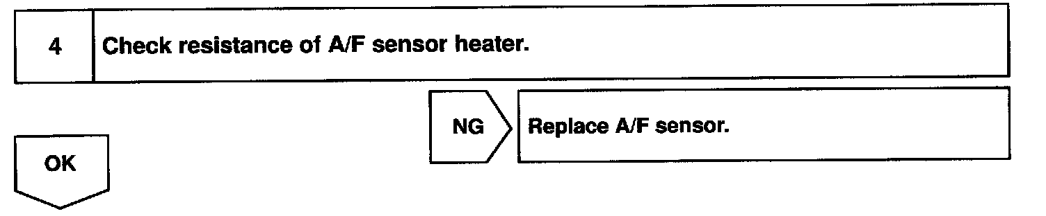 The A/F sensor is equipped with a heater which heats the zirconia element. The heater is controlled by the ECM. When the intake air volume is low (the Temperature of the exhaust gas is low), current flows to the heater to heat the sensor for accurate oxygen concentration detection.