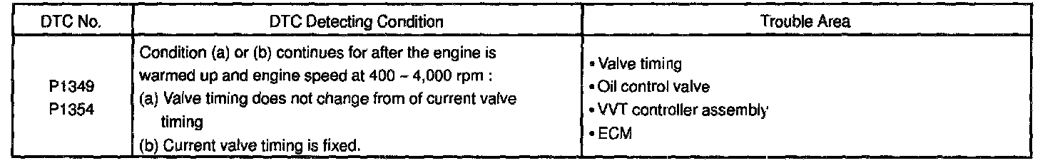- If DTC P1349 is displayed, check right bank VVT system circuit.