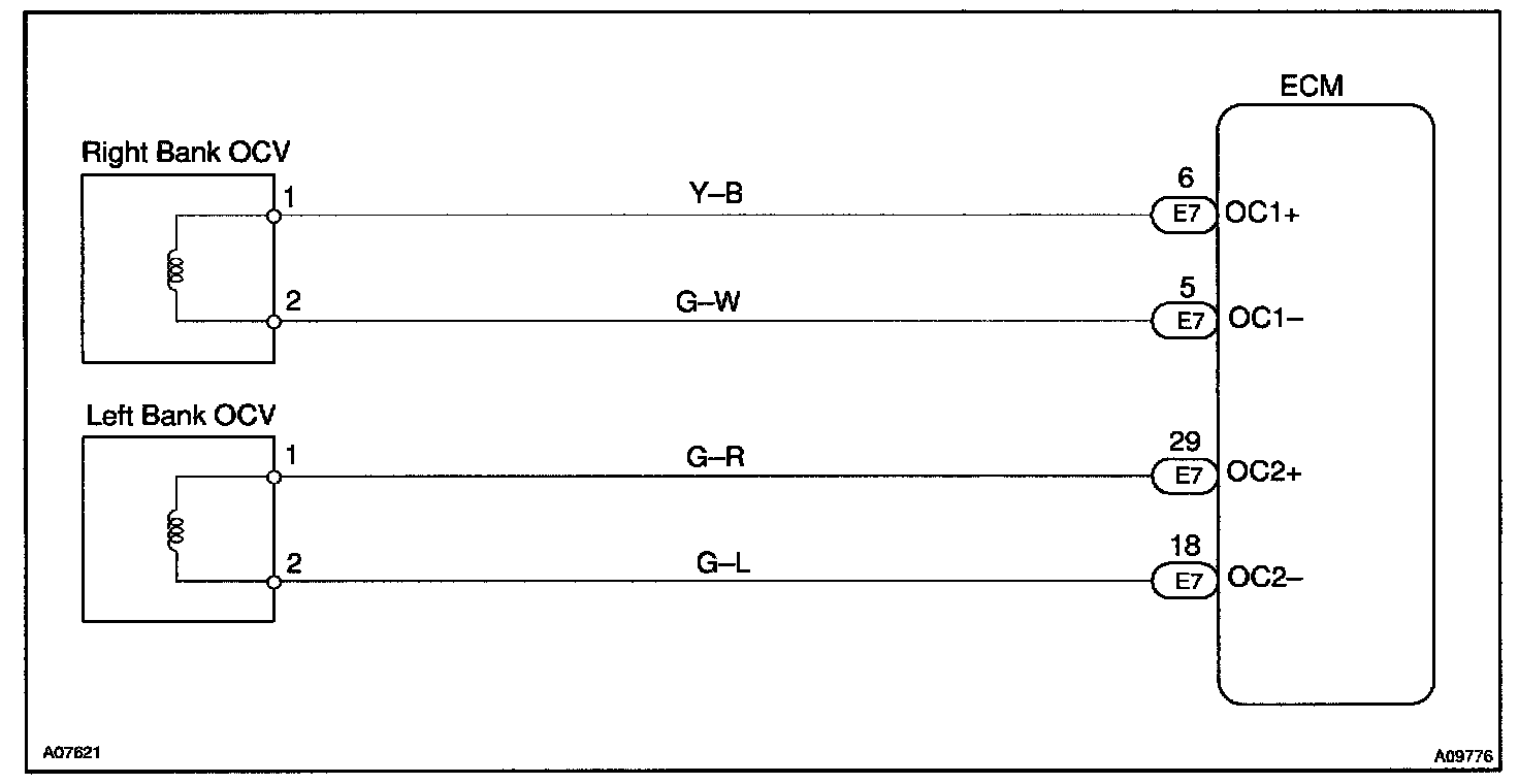 - If DTC P1663 displayed, check right bank OCV circuit.