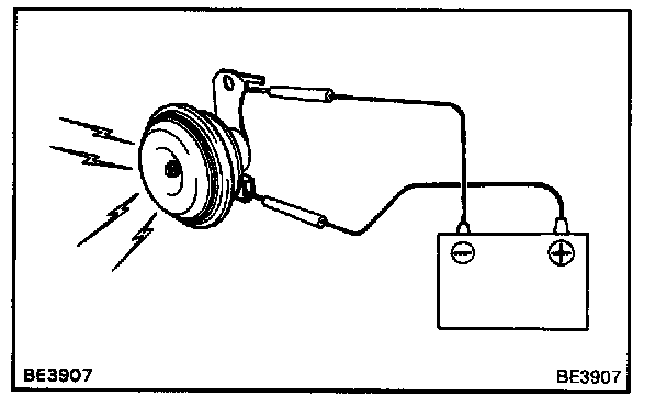 Connect the positive (+) lead from the battery to the terminal 1 and negative (-) lead to theft deterrent horn body, and check that the theft deterrent horn blows.