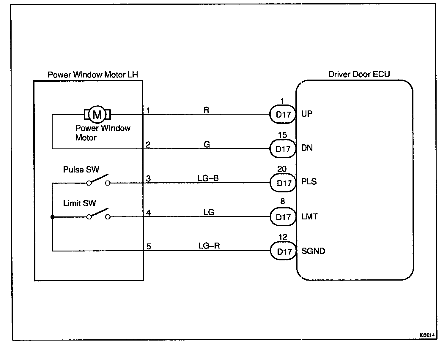 CIRCUIT DESCRIPTIONJam protection limit switch is built-in the power window motor. This switch functions to turn "OFF" before the top dead center, and ECU reads this "OFF" signal resulting in closing the window fully.