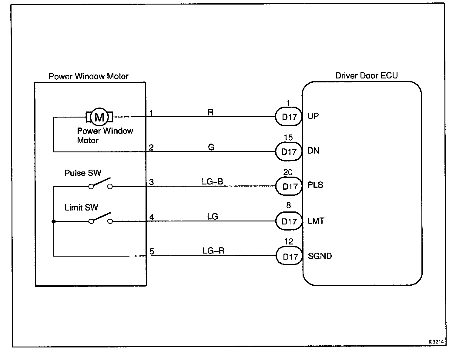 Jam protection pulse switch is built-in the power window motor. Pulse switch outputs