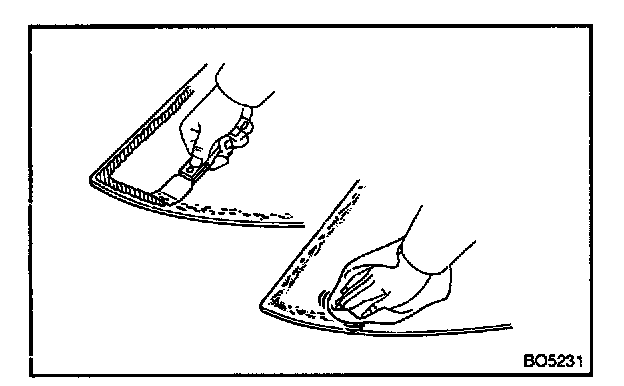 b. Clean the cutting surface of the adhesive with a piece of shop rag saturated in cleaner.