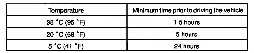 NOTE: Take care not to drive the vehicle during the time described in the table.